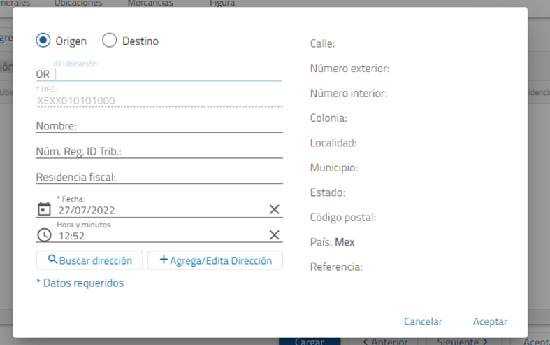 - RFC Remitente: RFC del remitente de los bienes. Se agrega por default el RFC genérico para extranjeros en caso de una entrada ya que dicho dato es obligatorio para el timbrado.