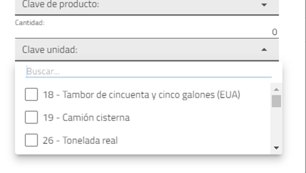 - Descripción: Descripción de los bienes. Se agrega en automático al seleccionar la clave del producto.