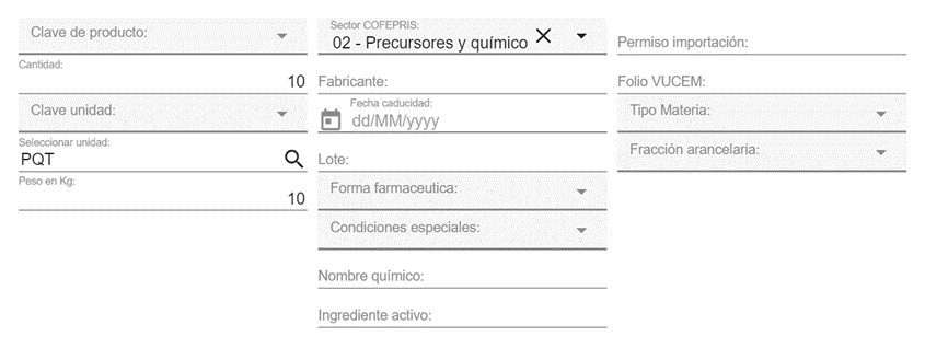 - Ingrediente Activo: Se debe agregar cuando el sector cofepris sea 02 o 05 y es el nombre común del ingrediente activo de los precursores, químicos de uso dual, plaguicidas o fertilizantes.
