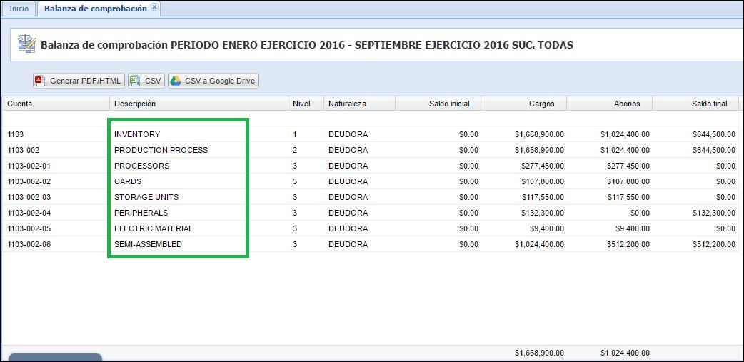 La idea es que se puedan emitir los reportes de Balance general, Balanza de comprobación, Estado de resultados y Sustitución contable con esta Descripción Auxiliar (por ejemplo, cuando se tienen los nombres de la cuenta en inglés).